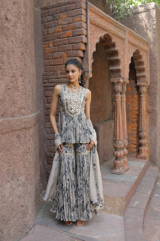 Dainty Mirror Sharara - Grey