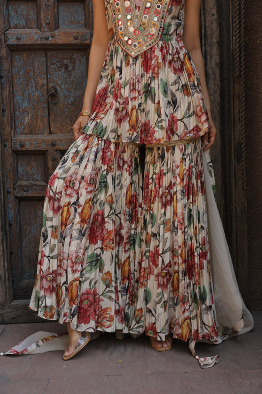 Dainty Mirror Sharara - Beige