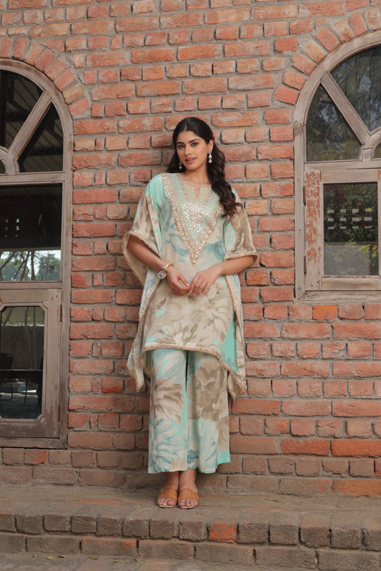 Aaina Kaftan Sharara - Blue