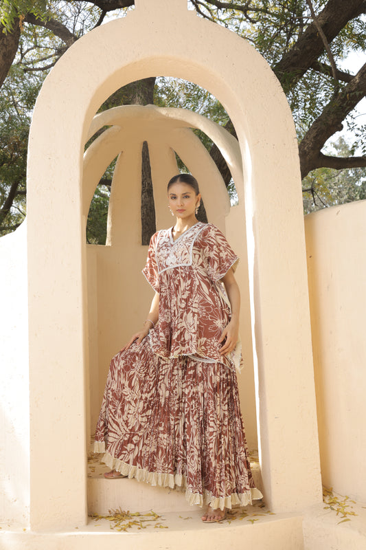Aaina Kaftan Sharara - Brown