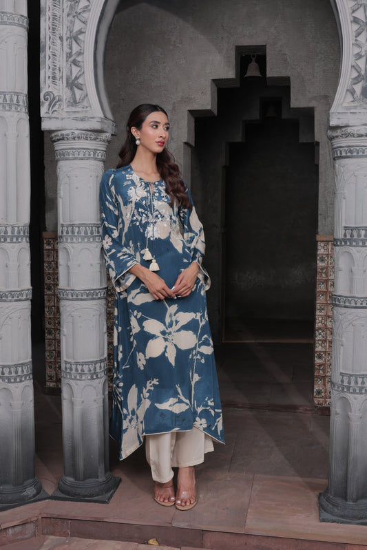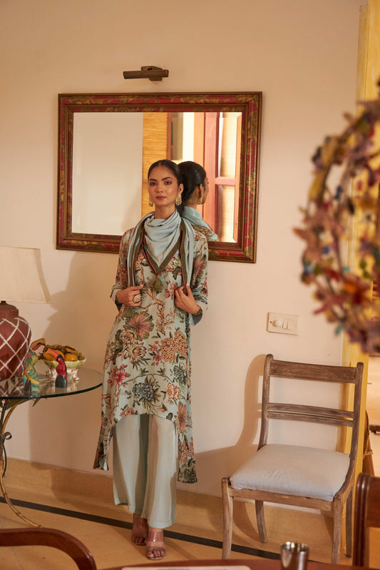 Floral Scarf Kurta - Blue