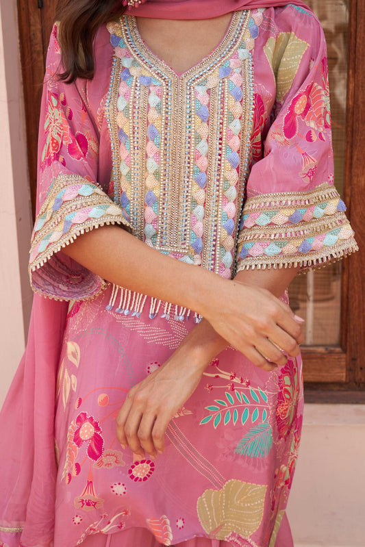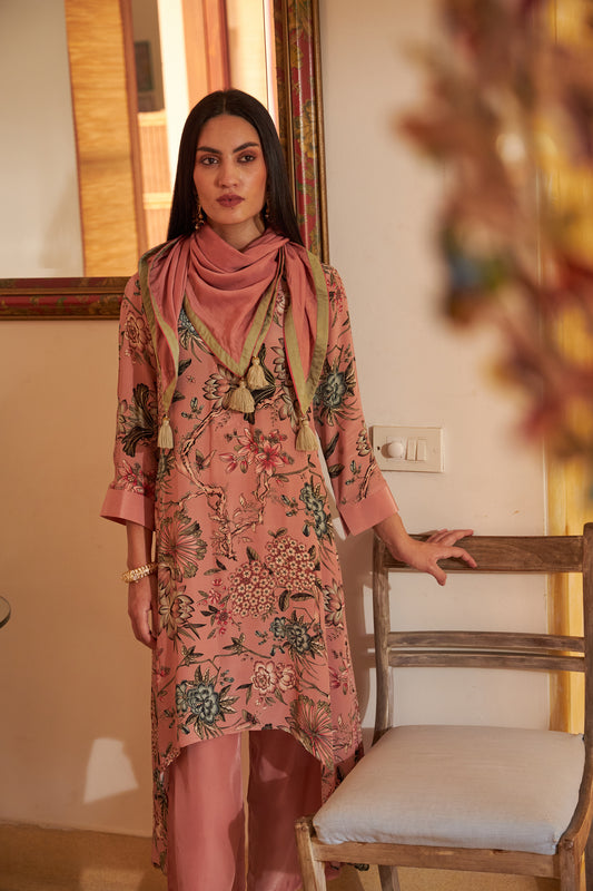 Floral Scarf Kurta - Pink