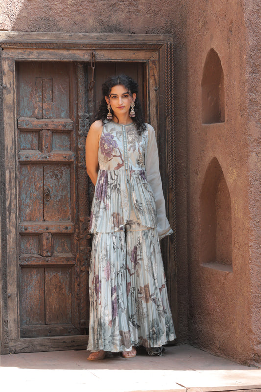 Gul Peplum Sharara - Blue