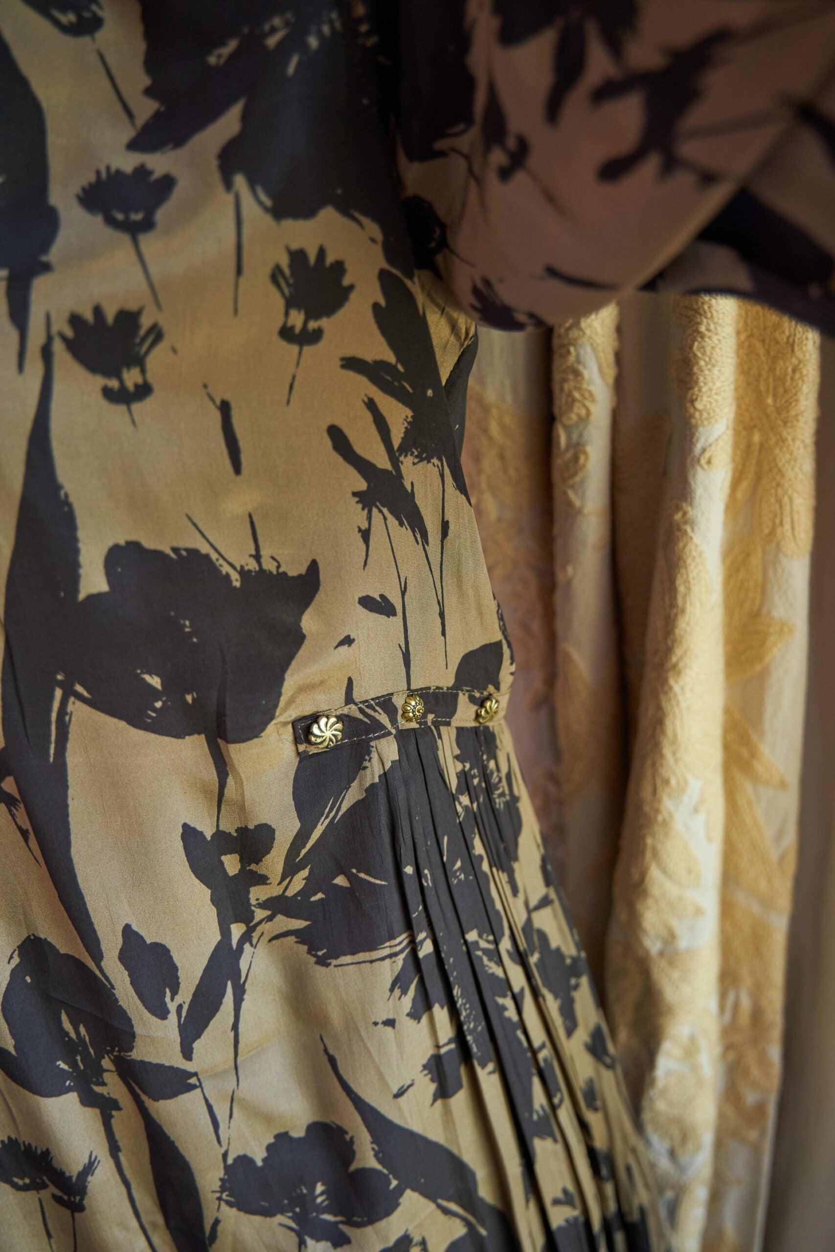 Grace your wardrobe with this cream paisley printed short A-line kurta set. Featuring intricate hand embroidery and lace work on the neck and sleeves, it exudes timeless elegance. Paired with a delicate organza dupatta, this set combines classic design with modern sophistication, perfect for any special occasion.