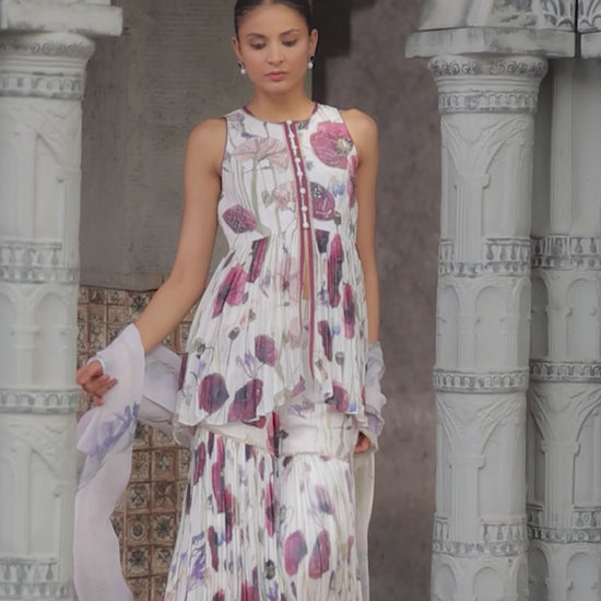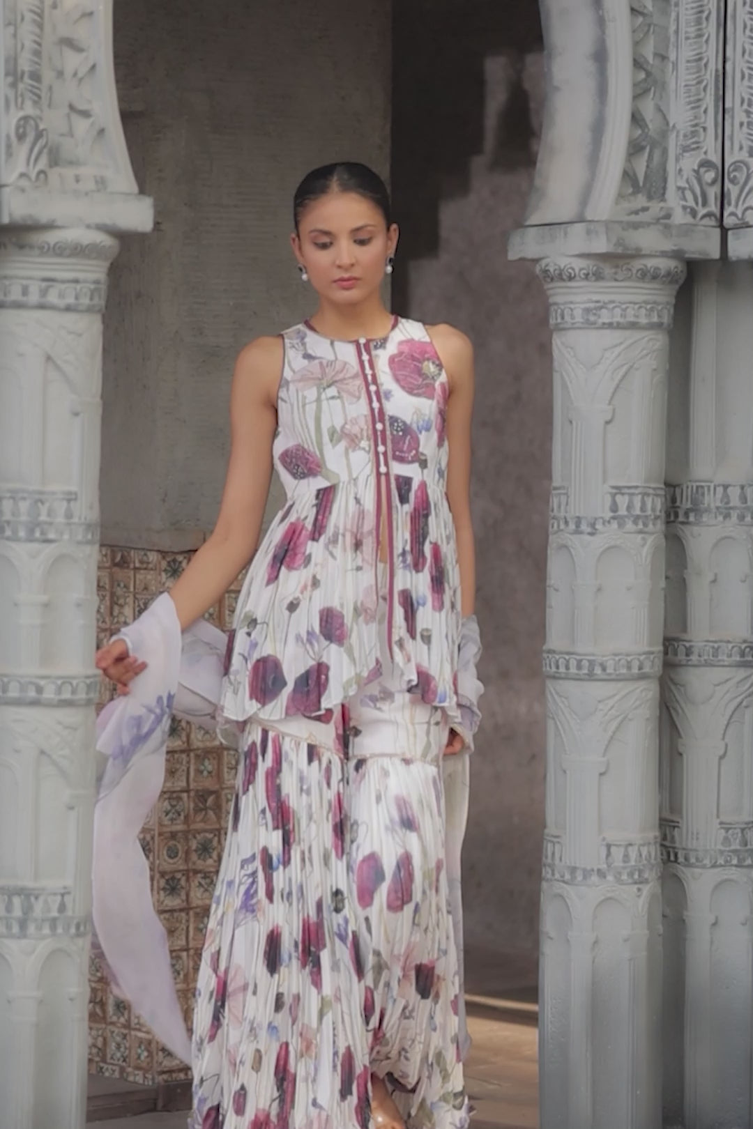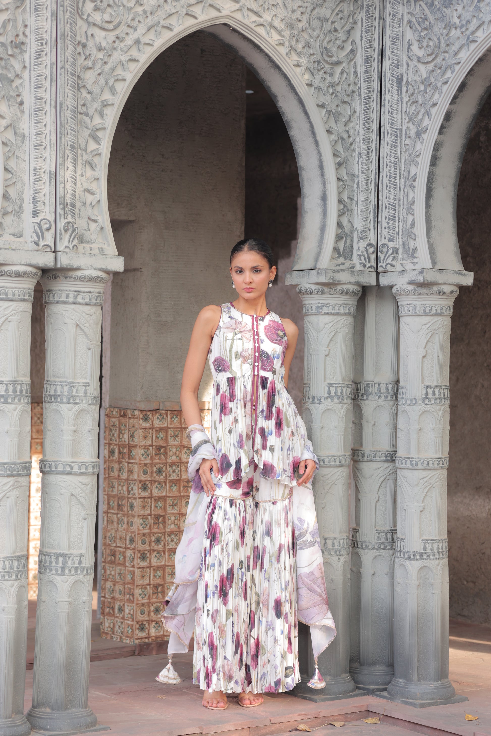 A breezy and elegant option for any occasion, the Dandelion Peplum Sharara Set combines soft, flowing fabric with beautiful peplum details for a flattering silhouette.