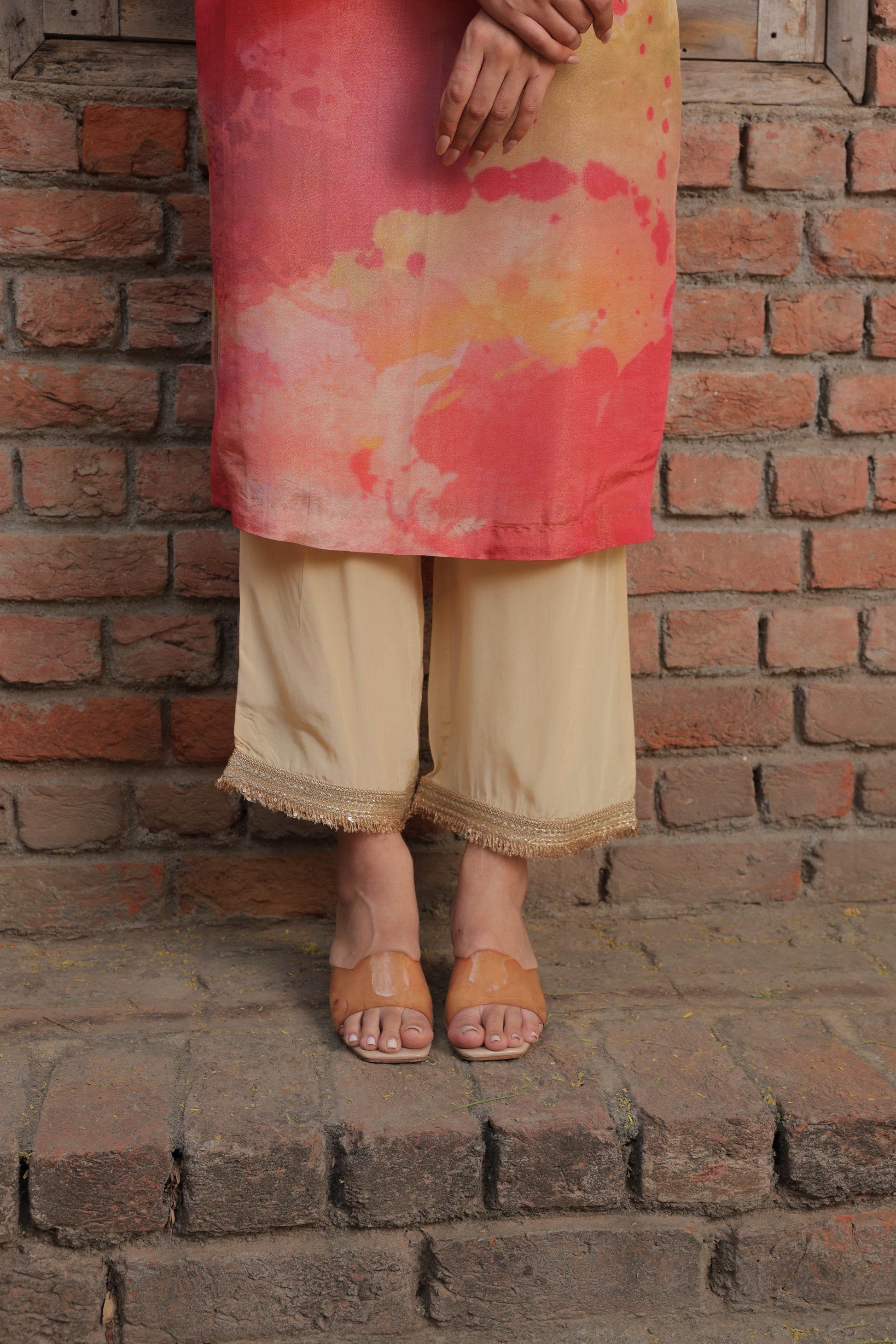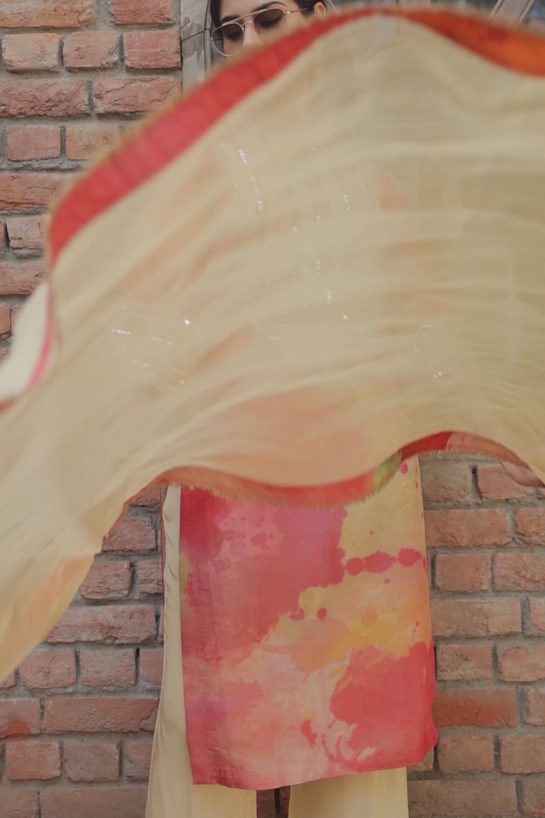 The Gaur Tissue Organza Suit Set radiates elegance with its lightweight organza fabric and refined silhouette, creating a delicate yet striking ensemble for any special occasion.