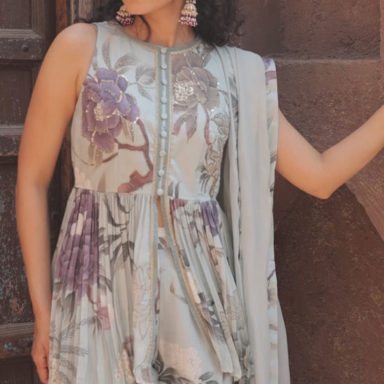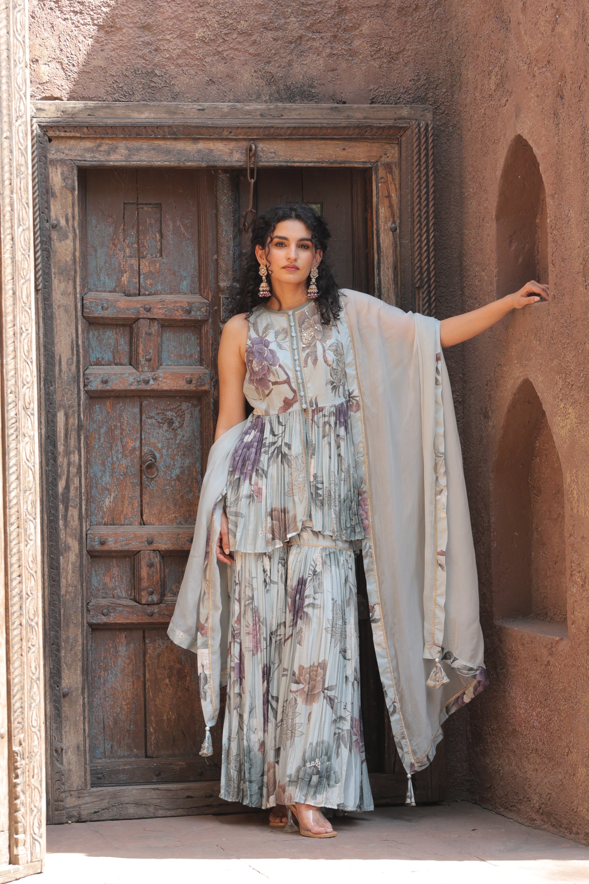 A celebration of feminine flair and festive spirit, the Gul Peplum Sharara is designed to make you feel effortlessly elegant. Featuring a beautifully flared peplum top with intricate detailing, paired with flowy sharara pants that sway with every step—this set is a dream for any occasion that calls for style with ease.