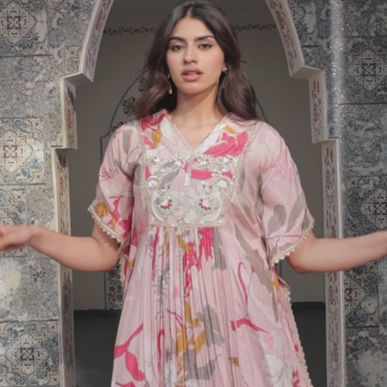 The Inaaya Kaftan Sharara Set is a harmonious fusion of modern and traditional styles, featuring a relaxed kaftan paired with a beautifully draped sharara for ultimate comfort and grace.
