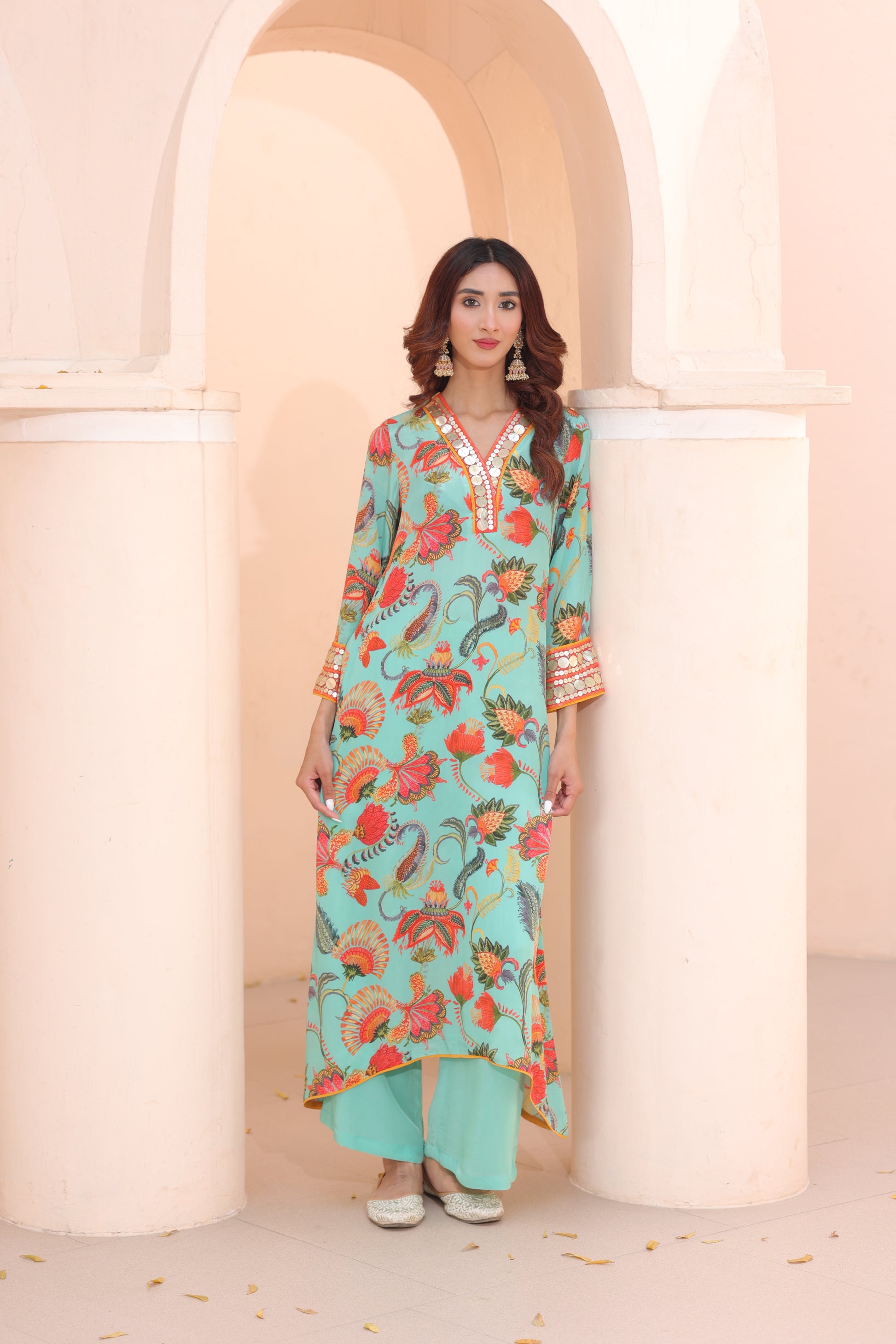 Let your style flow to the rhythm of comfort and elegance with the Sur Kurta Set. Crafted from breathable, lightweight fabric, this relaxed silhouette features a breezy kaftan top paired with coordinated bottoms for an effortlessly chic look. Delicate detailing and a fluid drape make it perfect for sunny days, festive lounging, or easy celebrations. Whether you're hosting at home or heading out, the Sur Kaftan Set blends tradition and ease in perfect harmony.