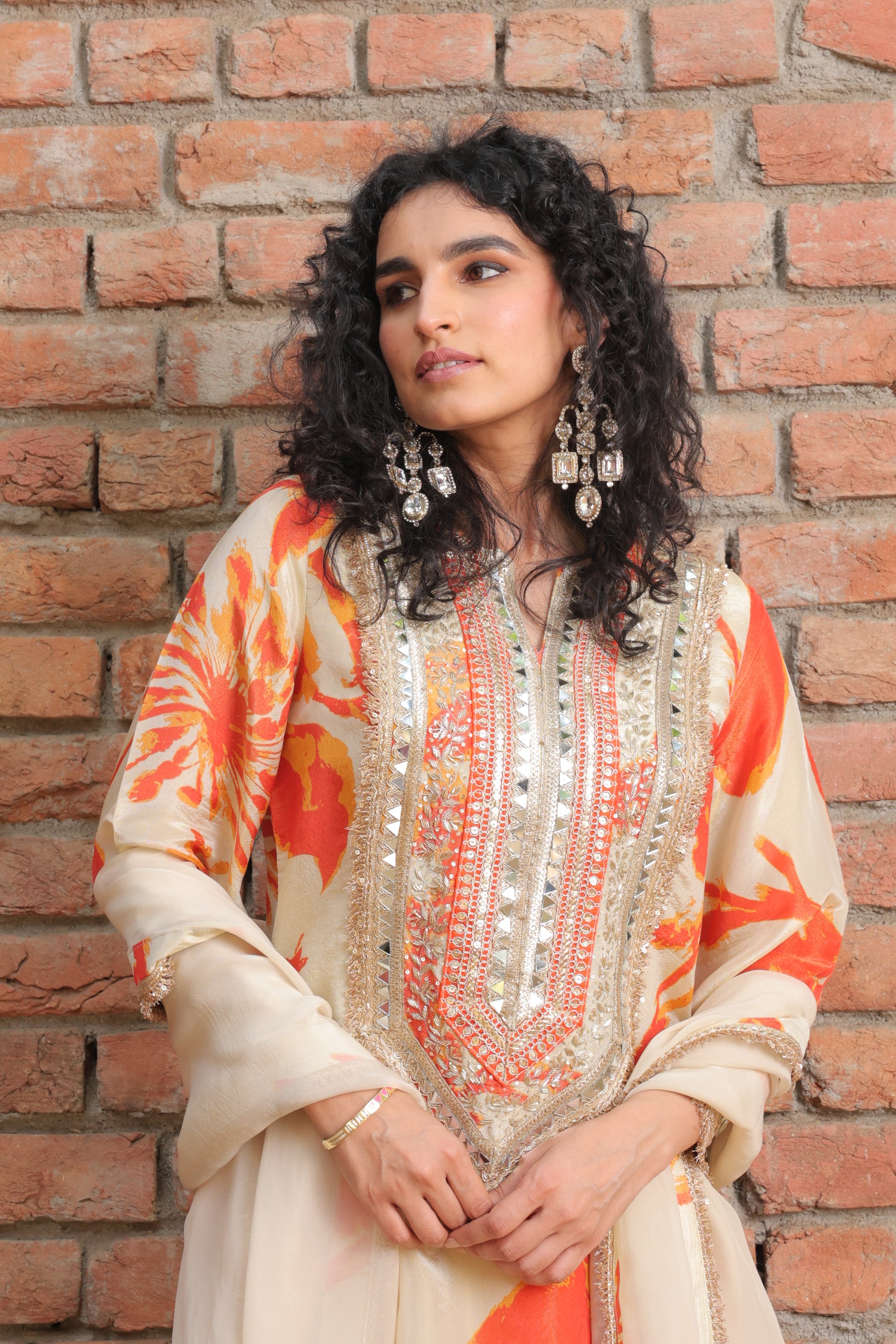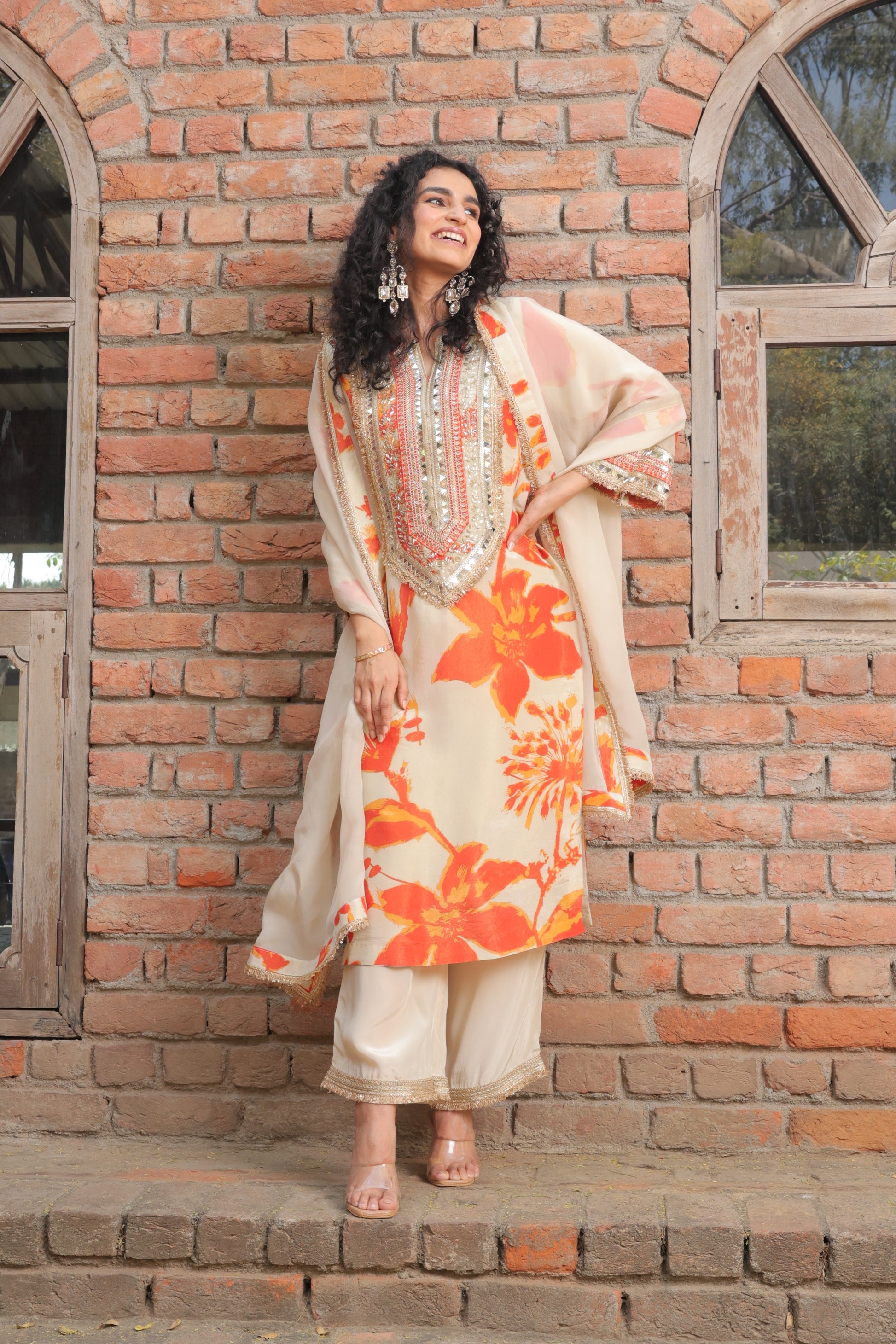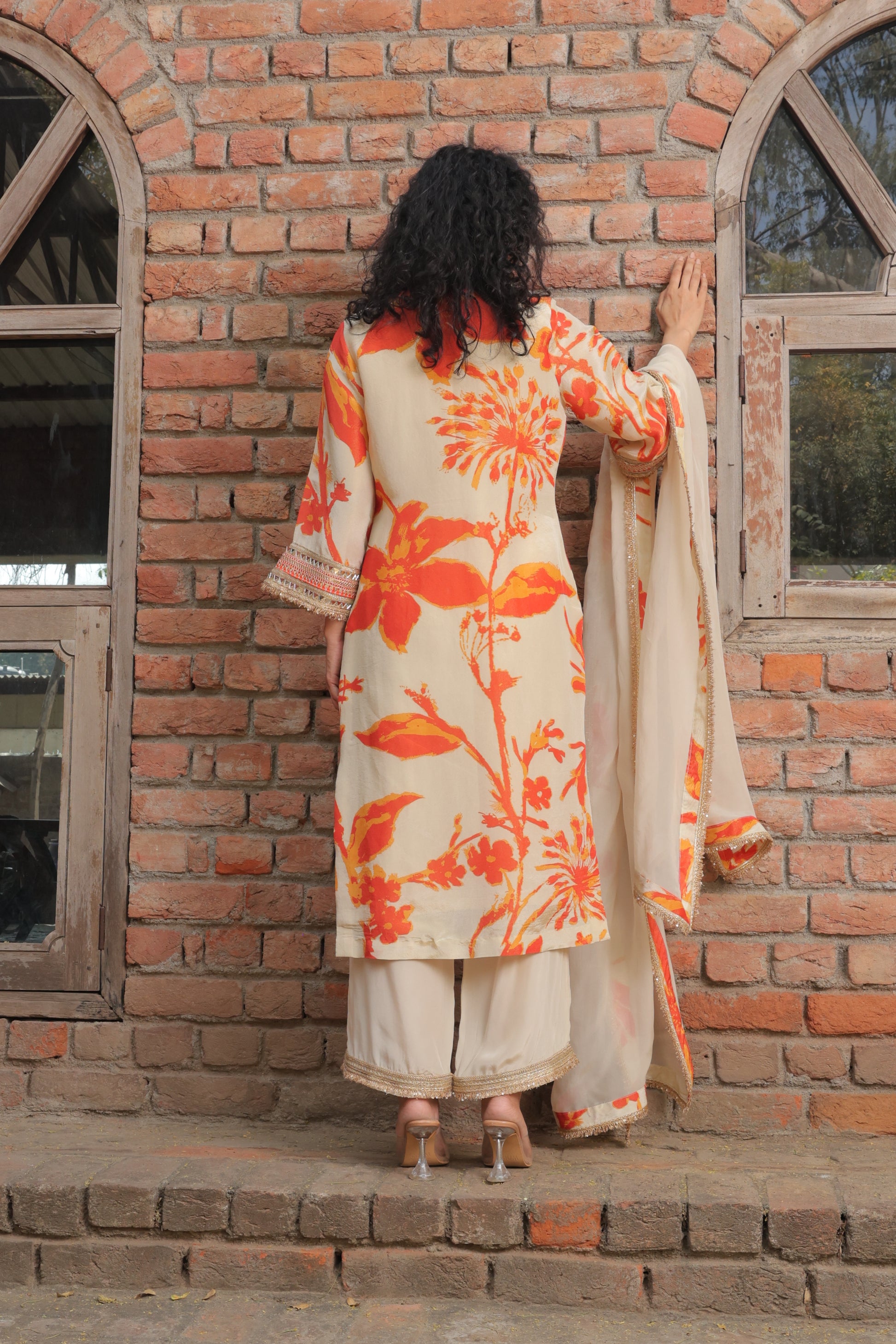 The Sheer Tissue Organza Suit Set is a lightweight, ethereal ensemble made from delicate tissue organza, creating a luxurious and airy feel.